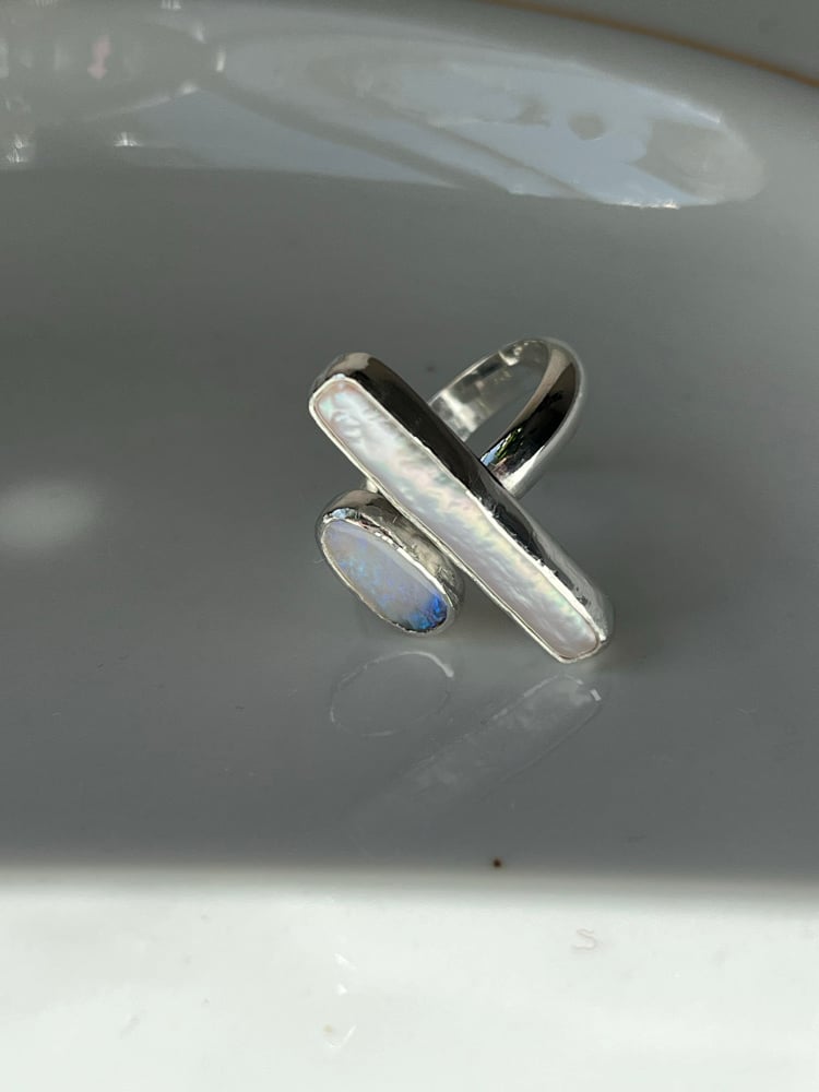Biwa Perle und Opal Ring