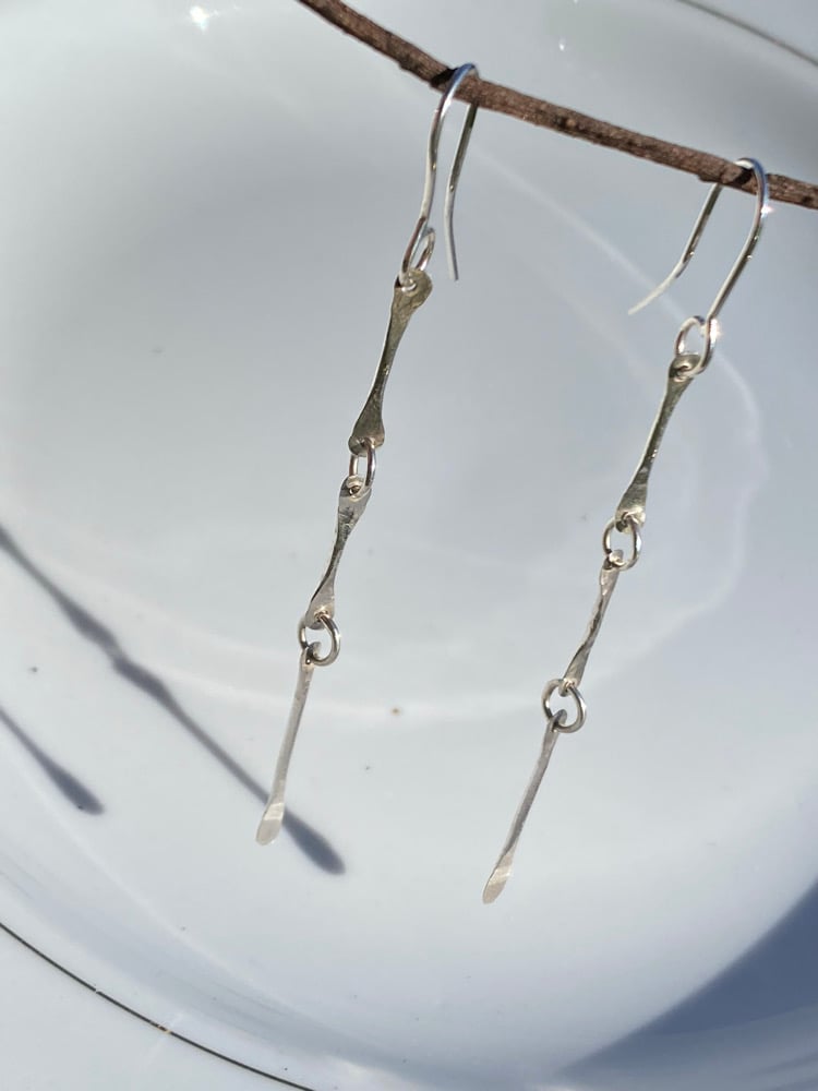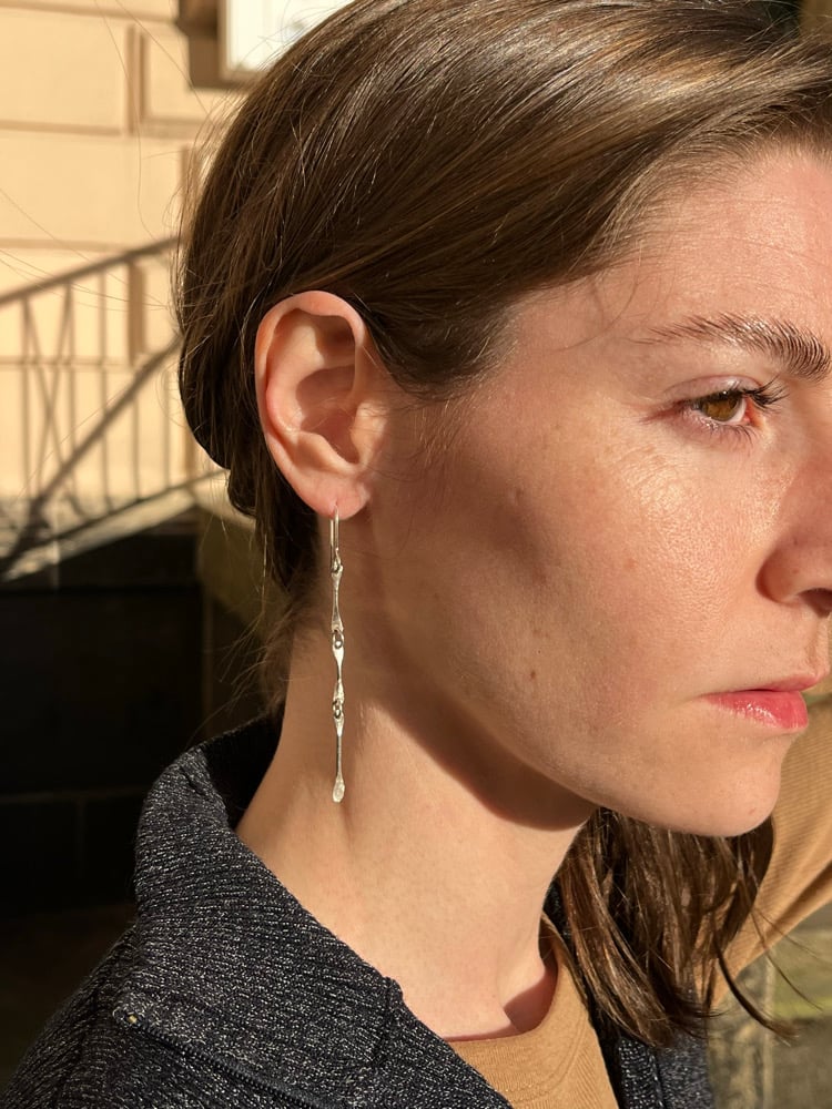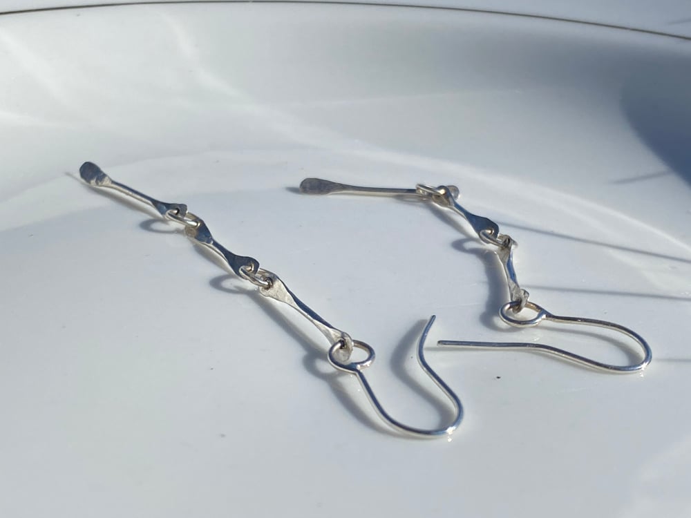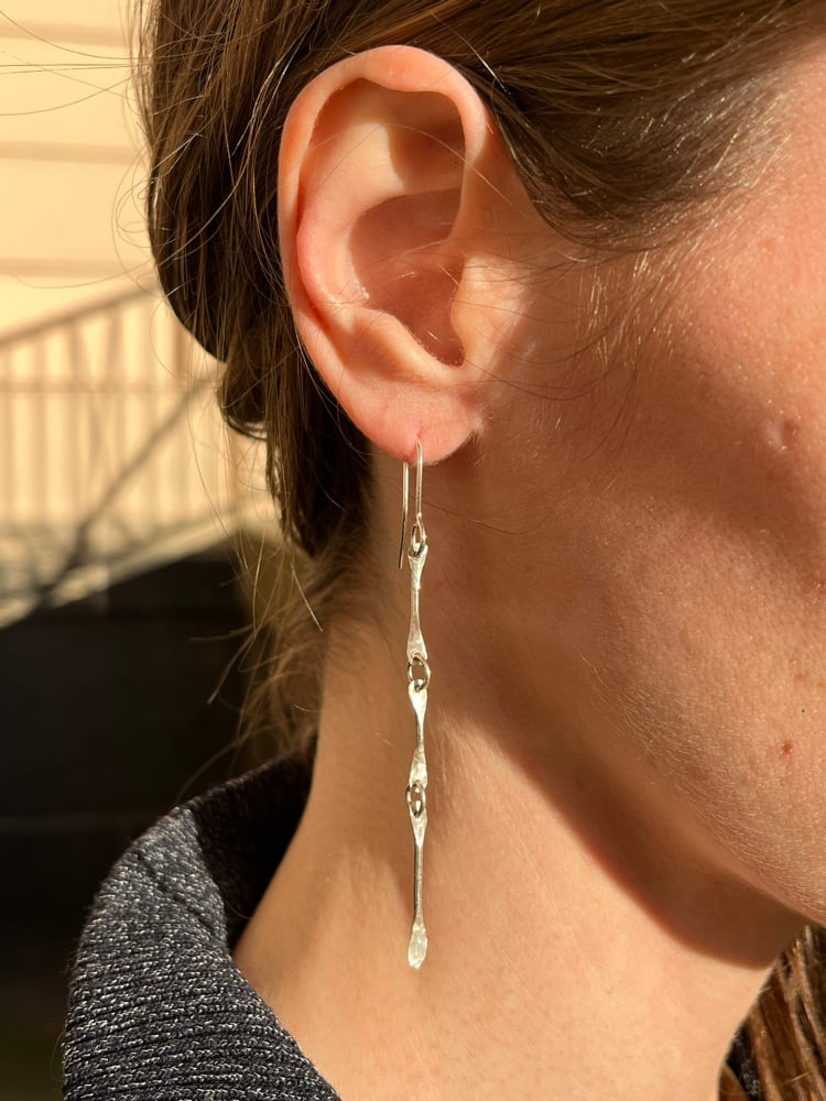 Feather-light Only Silver hook earrings. Three silver elements linked with loops sway gracefully with every movement - an exciting, shimmering dance in silver, yet still easy to wear.