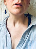 these flashy earrings tell the story of gazing into those endless summer skies - infinite blue and here and there a small innocent cloud. The vibrant blue and gold of this magical Lapislazuli pair is combined with the shimmering white of two small asymmetrical keshi pearls. Made to make you feel special like those precious days!