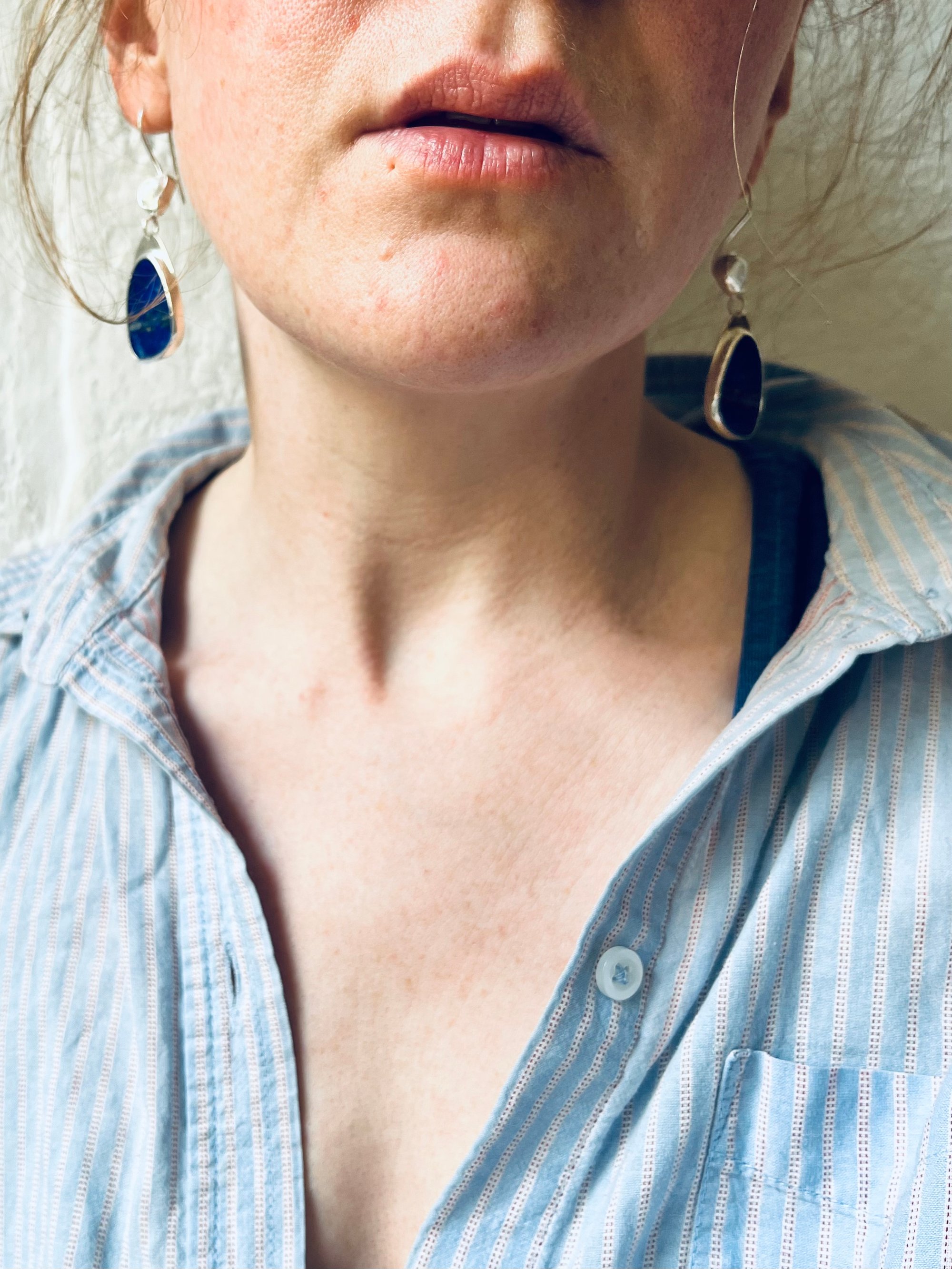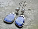 Big and beautiful Lapislazuli and freshwater pearl earrings made from 100% recycled sterling silver.