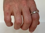 Ein erdiger Ring mit einem ganz besonderen Stein - ein kleiner Kiesel aus der Isar, dem Fluss meiner Heimatstadt München. Den Stein habe ich auf einem Spaziergang aufgelesen und selbst poliert. Die Farbe ist ein dunkles, warmes Apricot. Der Stein sitzt auf einem massiven, leicht gehämmerten Ringband.